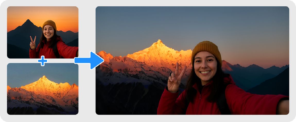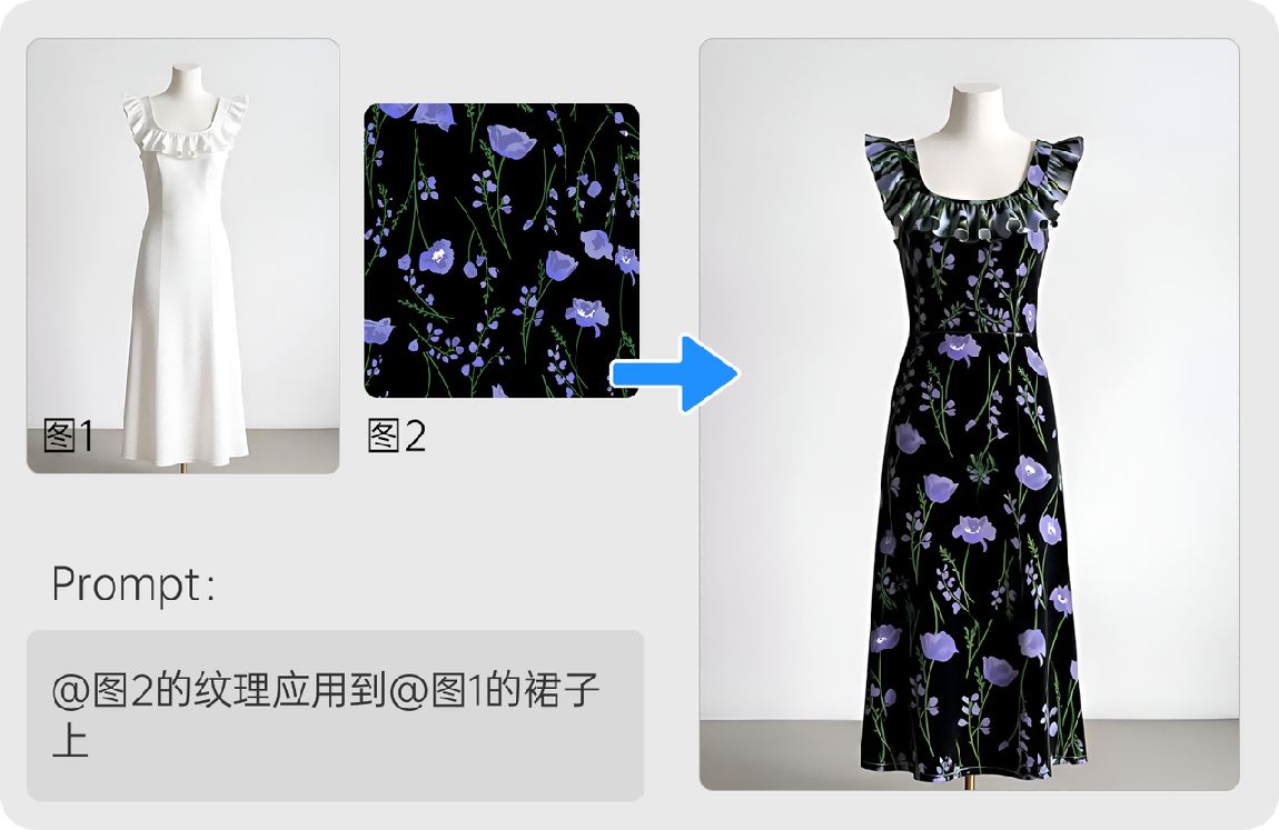 一张图 + 一句提示词,就能自由换装、换背景、自由合成。支持多人同场景或者多人多场景,满足复杂剧情、合影、多角色电商等场景。