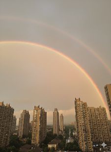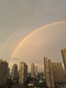 以下面的双彩虹照片为例,要求补全另外半边彩虹。