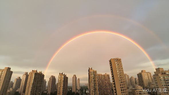 在上图的例子中,Nano Banana 并没有理解提示词中补全彩虹的意思,彩虹只出现了另外半边,而Vidu Q1参考生图则做到了将没有出现在图片中的另外半边彩虹补全,形成了完整挂在天上的双彩虹景象,表现出了极高的画面理解能力和一致性。