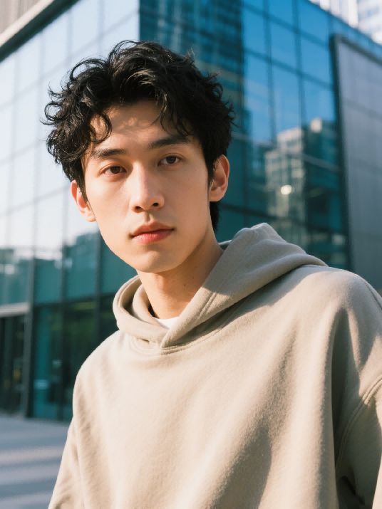 在案例3中,Nano Banana的人物左眼双眼皮消失,Midjourney人物凭空多了副眼镜,即梦的人物发型和卫衣服装都发生了变化,Kontext脸上多了很多斑点。Vidu则在人物脸部细节特征和服饰细节特征上都做到了非常准确地还原。