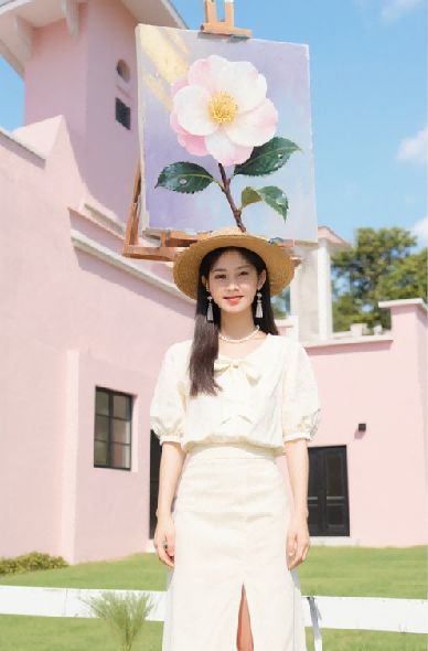 用Vidu Q1参考生图把裙子换上今年夏天最时髦的碎花花纹,变身最潮达人。