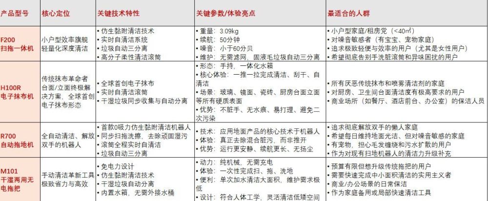 本次AWE 2026的亮相,标志着HIZERO赫兹已从单一品类创新者,成长为拥有完整清洁生态的解决方案提供者。从手动(F600)到全自动(R700),到首创电子抹布(H100系列),再到无需用电的全能拖把(M101),产品矩阵清晰覆盖了用户从地面到立面、从日常维护到深度清洁的全场景需求。