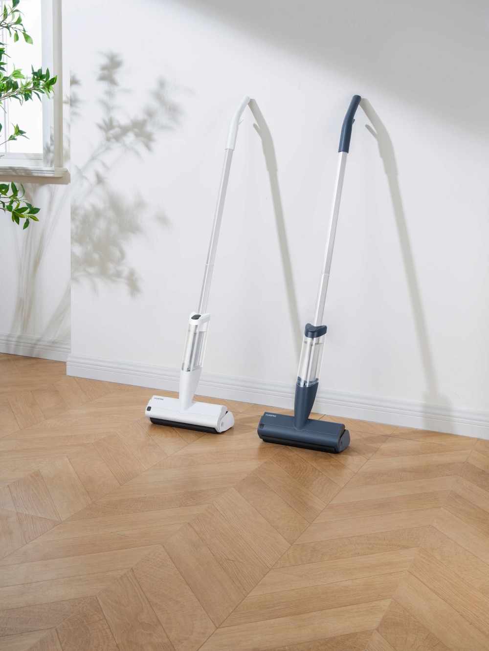 M101干湿两用拖把完全无需用电和携带额外水桶,一把拖把即可实现自清洁。