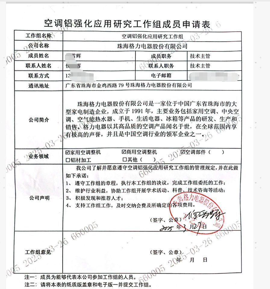 真相之二:2025年春天,格力空调已经申请加入了“铝代铜”工作组。