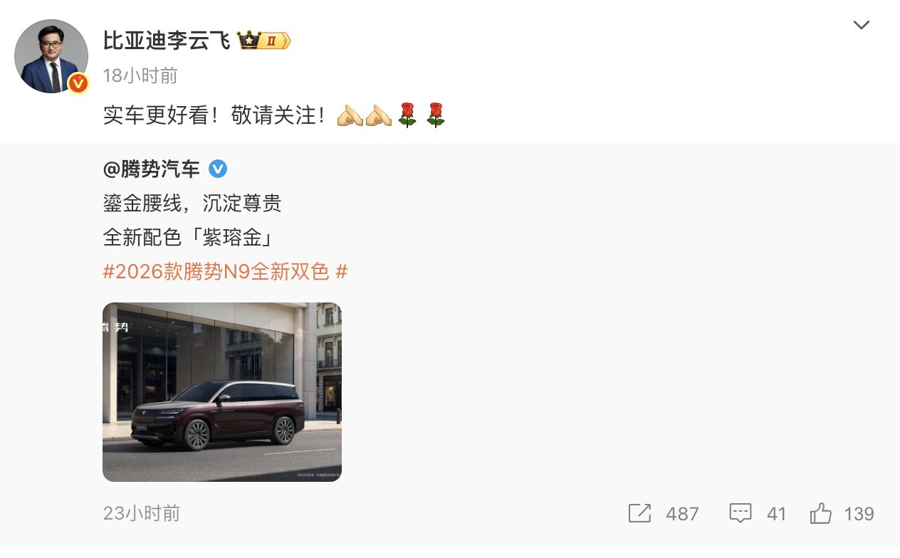 从紫金双色车身官图曝光,到OTA带来的驾控进化,再到高速避让测试持续刷新纪录,腾势N9不断以“豪华、智能、安全”的综合实力,重塑大型旗舰SUV的价值新标准。