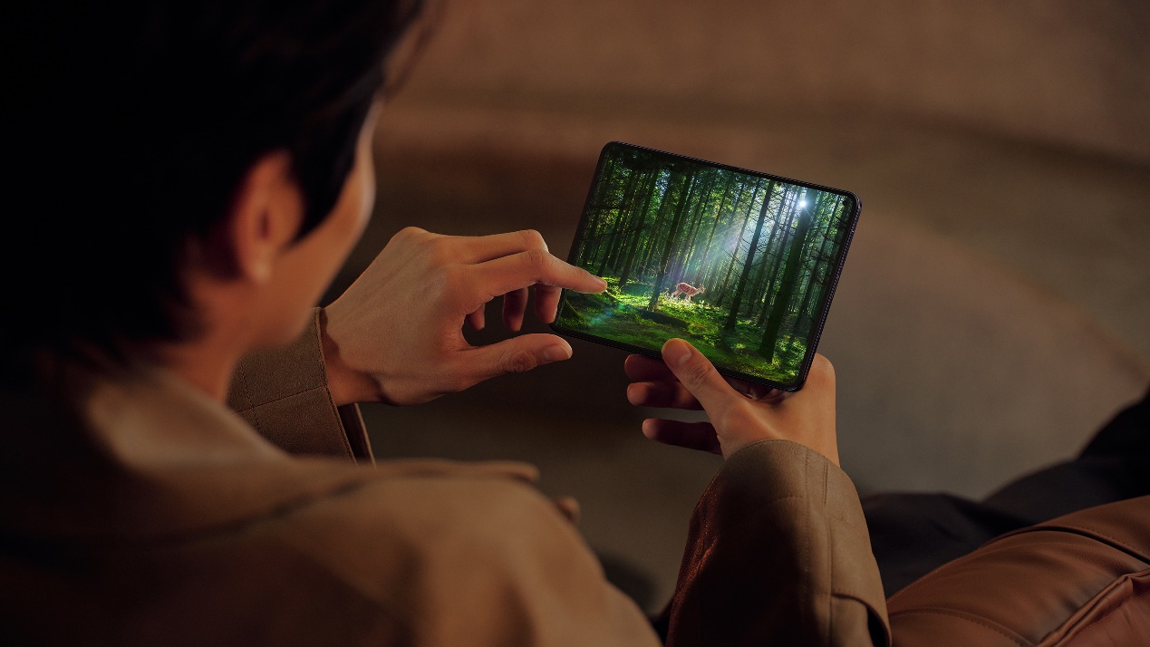 展开内屏,7.7 英寸的外屏直接带来近乎平板级别的沉浸感。这块屏幕采用 1.4:1 黄金比例,接近 32 开实体书的阅读尺寸,阅读时每行显示文字更多,长时间看内容更轻松。横屏观看影视剧时,有效显示面积显著提升,黑边大幅减少,视野更完整。