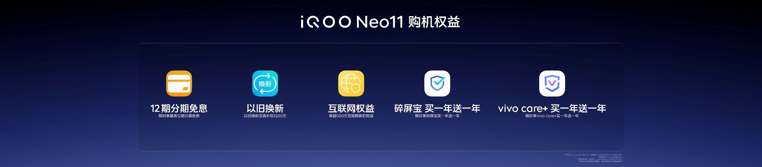 iQOO Neo11 共有 5 个版本可供选择,12GB+256GB 版本售价 2699 元(首销限时到手 2599 元);16GB+256GB 版本售价 2999 元(首销限时到手 2899 元);12GB+512GB 版本售价 2999 元;16GB+512GB 版本售价 3299 元;16GB+1TB 版本售价 3799 元,即刻下单,享更多权益。