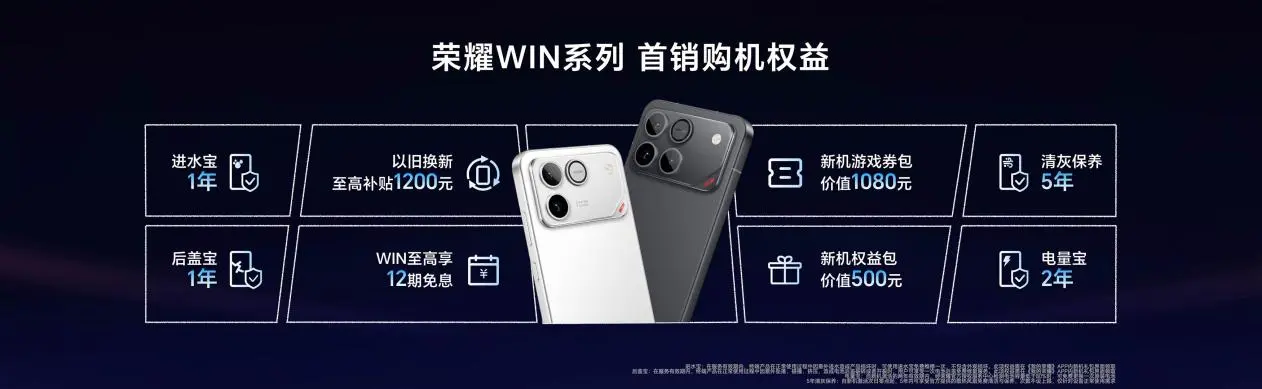 荣耀WIN系列“超神性能双旗舰”现已全面开售,首销期间购机可享12期免息、游戏券包、以旧换新等八大权益,总价值3829元。消费者可在荣耀商城、各大授权电商、指定荣耀体验店选购。