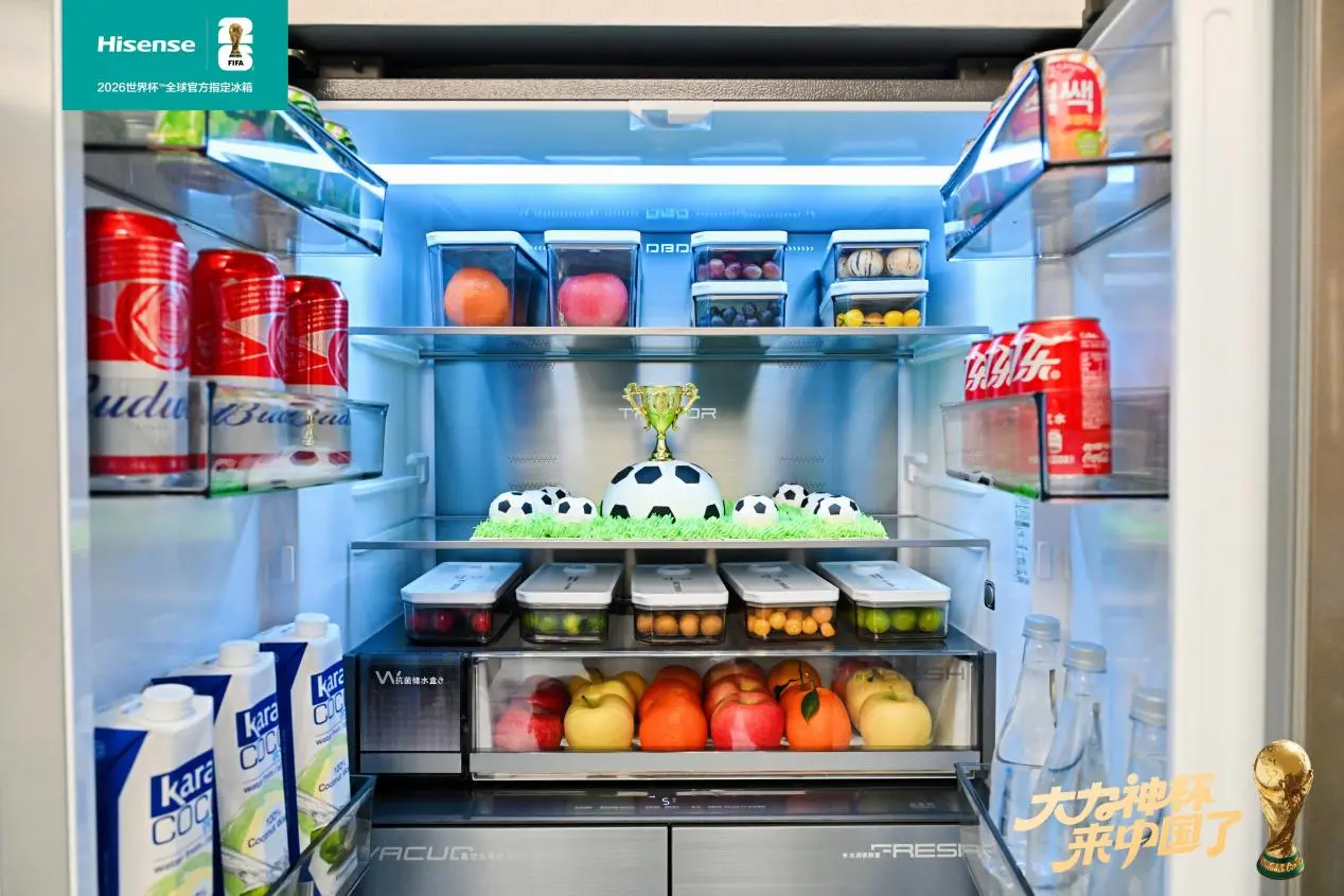 12月21日,象征世界足球最高荣誉的大力神杯在青岛首次面向公众展出,引发了广泛关注。活动现场,海信冰箱携三款2026世界杯定制冰箱同步亮相,将“真空锁鲜”科技与体育竞技“保持最佳状态”的冠军精神深度融合,为消费者呈现一场科技与体育交织的新鲜盛宴。