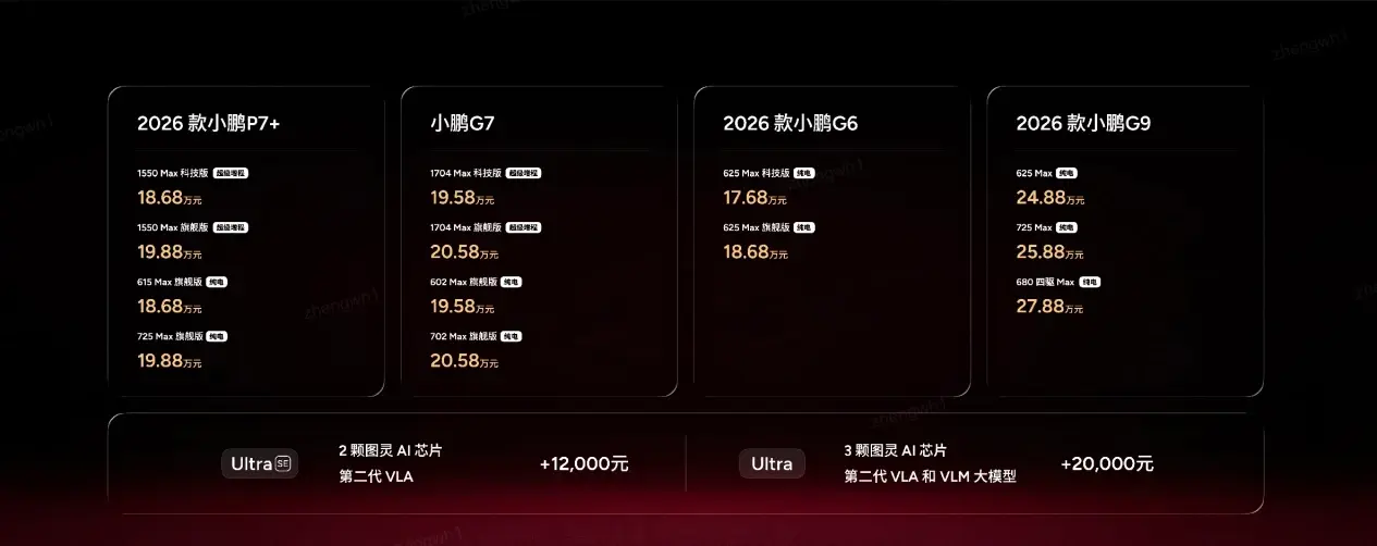今日,在2026小鹏全球新品发布会上,小鹏汽车正式发布2026 款小鹏 P7+、小鹏 G7 超级增程、2026 款小鹏 G6、2026 款小鹏 G9。其中2026款小鹏P7+ 全球36国同步发布,新车