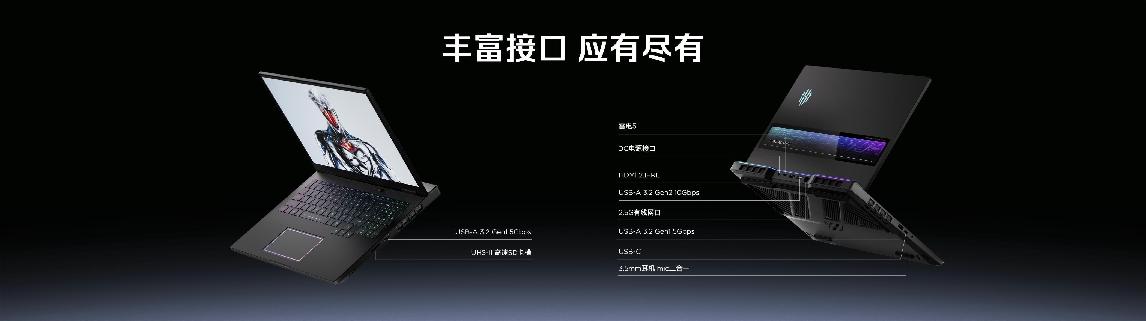红魔游戏本16 PRO配备全场景接口,无需依赖拓展坞,即可连接多种外设。配备雷电5接口,同时包含2.5G有线网口,网络传输稳定,适合对网速要求高的在线游戏、直播场景。搭载HDMI 2.1 FRL接口,可外接高刷新率显示器,打造多屏游戏或办公场景;配备3个USB-A接口,可同时连接键盘、鼠标、U盘、手柄等外设,无需频繁切换接口。