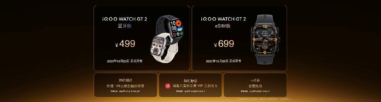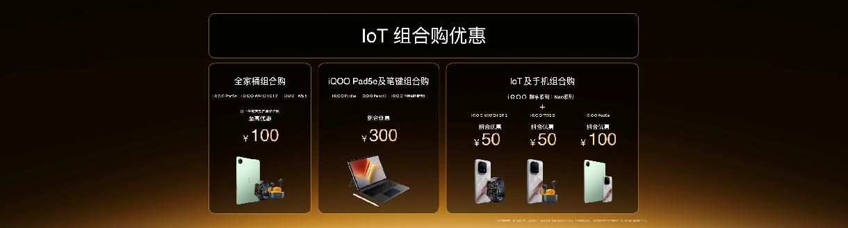 iQOO Pad5e、iQOO WATCH GT 2 和 iQOO TWS 5 的售价分别是 1999 元起、499 元起和 399 元,组合购买更优惠。