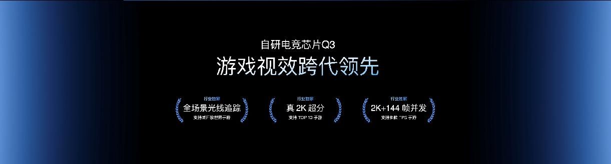 自研电竞芯片 Q3 现已适配 180+ 款 PC 级游戏超分、180+ 款 PC 级游戏超帧和 7 款头部游戏超分超帧,并携手 10大 Top 级游戏迈入真 2K 视效时代、联袂 4 大顶流 FPS 游戏带来领先枪战体验,并成功落地全场景自研光线追踪技术。iQOO是行业中迄今为止游戏内置超分超帧数量上更为领先的厂商。