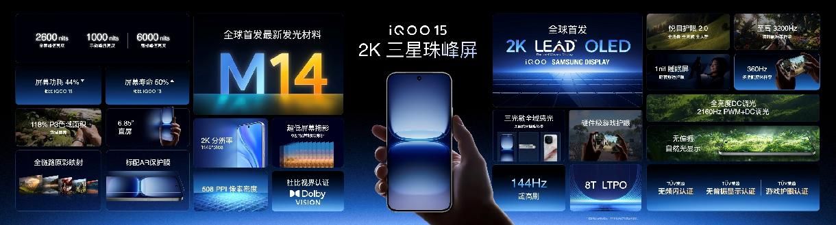 “跨代领先”iQOO 15 传承 iQOO 手机在实力和口碑的双重表现,搭载由第五代骁龙 8 至尊版领衔的“至尊性能组合”完全体,实现行业领先的性能表现,并在自研电竞芯片 Q3 和 Monster 超核引擎的支撑下,带来“全场景光线追踪+ 2K 原画超分+144FPS 无损超帧”,共筑行业领先游戏视效生态;更以全新演绎的国潮设计、超级潜望长焦以及更流畅智慧的 OriginOS 6等一系列强悍配置,打造一款“性能超长板,全面无短板”的未来性能旗舰。