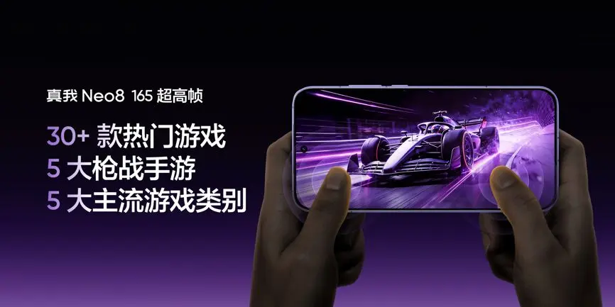 目前,真我Neo8已支持《三角洲行动》、《和平精英》等五大枪战手游在内的共计超30款热门手游原生165帧模式,彻底覆盖 FPS、MOBA、竞速、格斗、音游等五大类主流热门手游;《王者荣耀》、《无畏契约:源能行动》的原生144帧模式,挑战最强超高刷游戏生态。