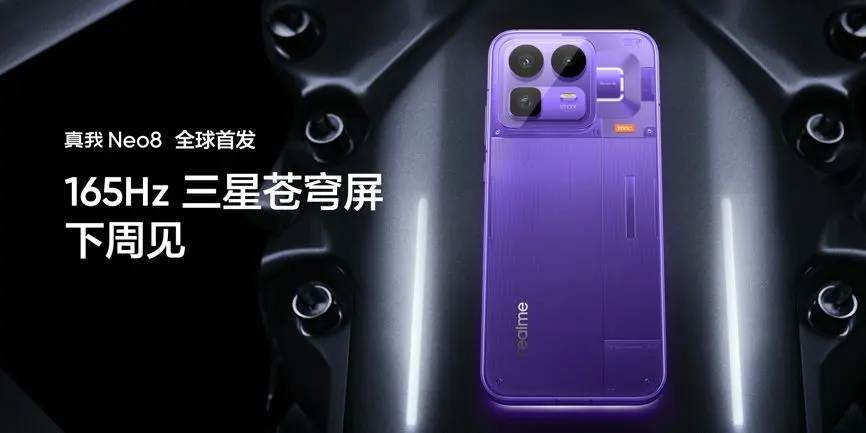 2026年,真我Neo8携手三星显示独家定制165Hz三星苍穹屏,通透、流畅、操控、护眼四大维度实现全面越级,重新定义新一代潮玩电竞旗舰的屏幕上限。