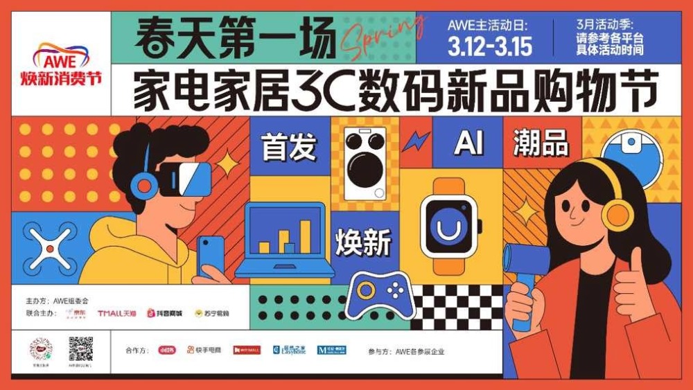 作为落实国家扩大内需战略和承接消费品以旧换新政策的重要平台,今日起“AWE焕新消费节”已正式上线。“AWE焕新消费节”由AWE主办方联合京东、天猫、抖音商城、苏宁易购等全网头部平台共同打造,是“春天第一场家电家居3C数码新品购物节”。活动重点围绕展会现场首发新品、年度趋势产品与重点爆款,打通了从体验前沿科技到一键下单焕新的消费闭环。3月12-15日期间,广大消费者只需在各大平台搜索“AWE焕新消费节”,即可共享换新红利。