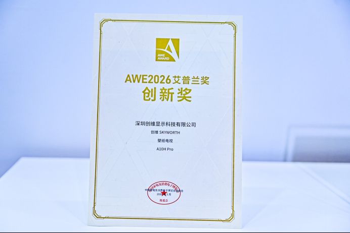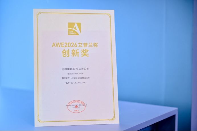 3月12日,在2026年中国家电及消费电子博览会(AWE2026)现场,备受行业关注的艾普兰奖正式揭晓,创维旗下三款旗舰产品——创维壁纸电视A10H Pro、创维「超净洗」超薄全嵌滚筒洗衣机、创维光伏能亮站,凭借突破性创新性美学设计与硬核技术实力,均一举摘得“AWE2026艾普兰创新奖” 。