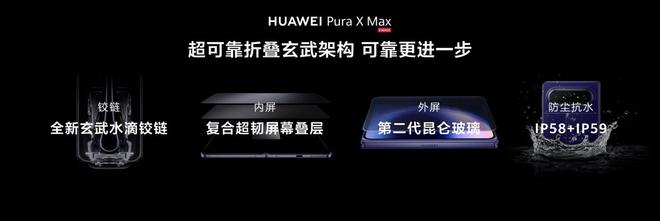 不仅如此,为了夯实行业标杆地位,华为Pura X Max在性能、续航与可靠性等方面也实现了重大升级。麒麟9030 Pro旗舰芯片与鸿蒙操作系统 6.1深度协同优化,实现整机性能提升30%;5300mAh电池配合66W有线与50W无线快充,有效缓解续航焦虑;超可靠折叠玄武架构集UTG玻璃、碳纤维支撑层、第二代昆仑玻璃与玄武水滴铰链于一身,加之IP58/IP59级防尘抗水能力,打破了折叠屏“娇贵易损”的刻板印象。