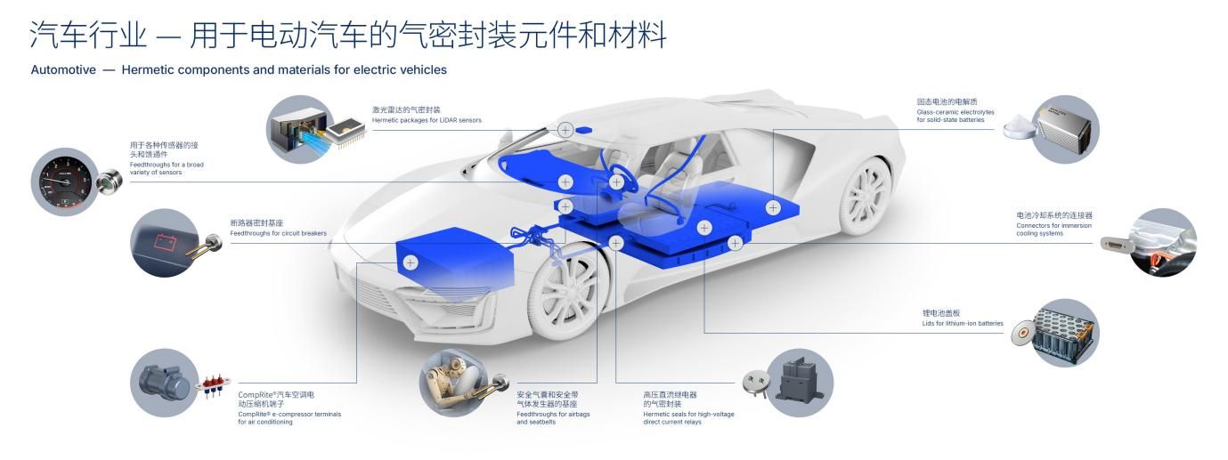 一辆新能源汽车中可能有30多个零部件都使用了肖特的特种材料,包括各种保障行车安全的汽车电池和电子气密封装、赋能自动驾驶的激光雷达传感器、营造车内氛围的光纤内饰等;